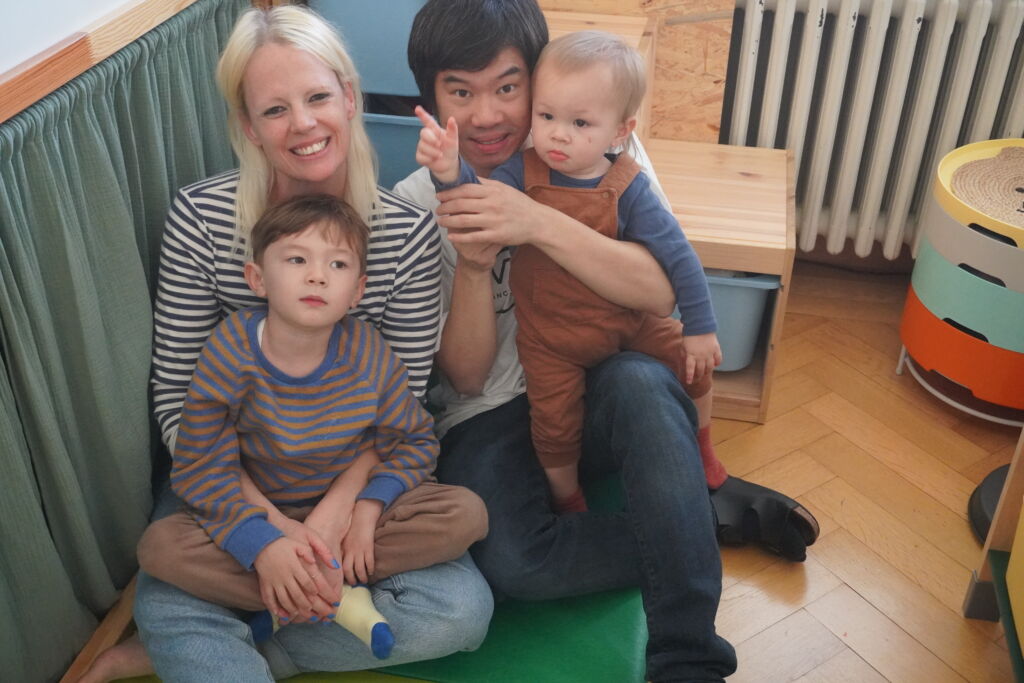 Carmela und Kelvin mit ihren hörenden Söhnen Xeon und Xian