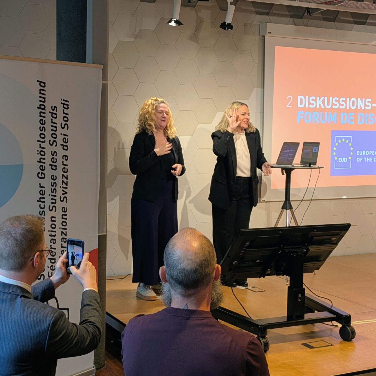 La participation politique a aussi été abordée. Il faut davantage de personnes sourdes en politique et dans l’administration – là où les décisions sont prises et mises en œuvre. Enfin, l’EUD a relevé que les personnes sourdes restent souvent invisibles dans les statistiques et les collectes de données.