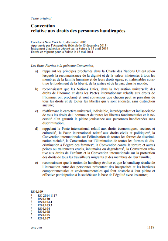 Convention relative aux droits des personnes handicapées (CDPH) de l’ONU