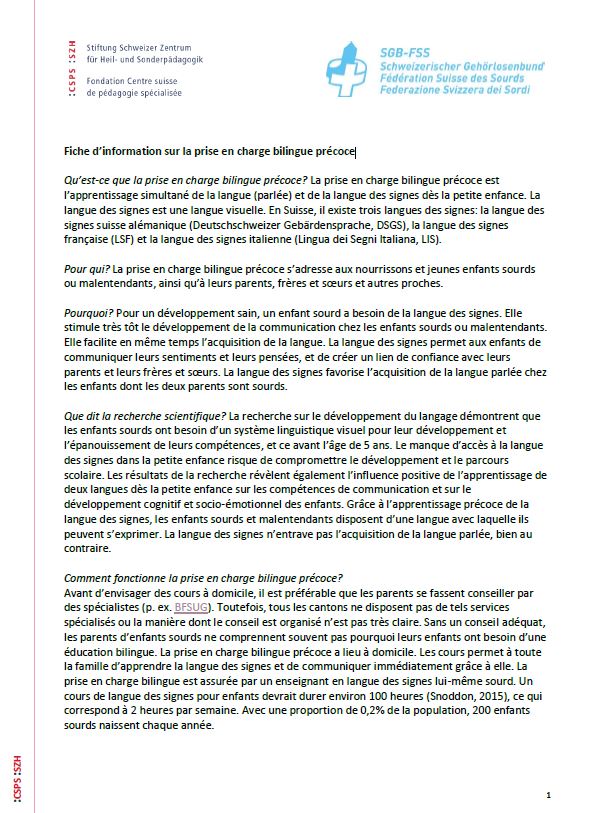 Factsheet «Étude sur la situation des sourds et des malentendants