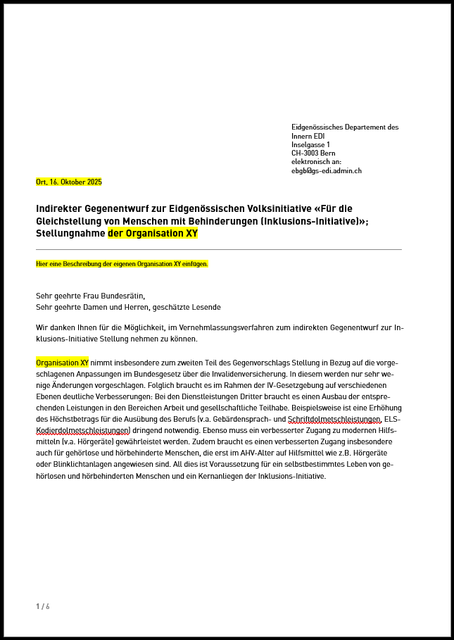 Modèle de réponse à la consultation Initiative pour l’inclusion (en allemand)
